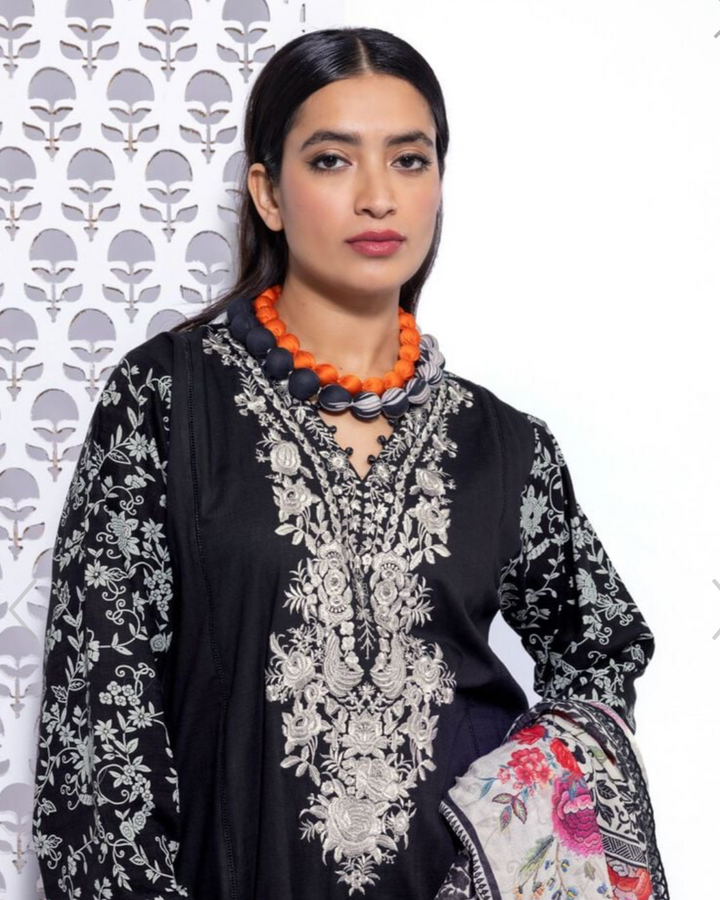 Khaadi- 3 Piece Stitched Black with white embroidery