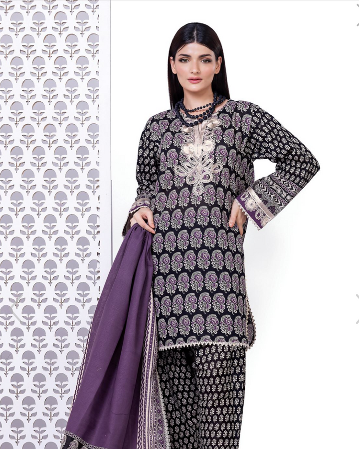 Color: Purple black Khaddar