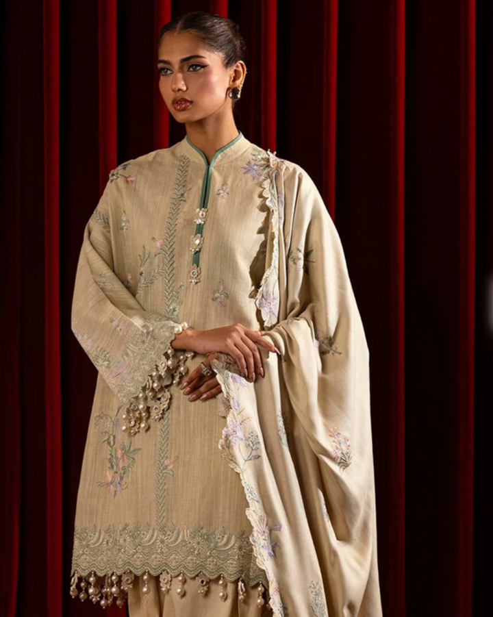 Sana Safinaz – 3 Piece Un Stitched Beige green embroidery