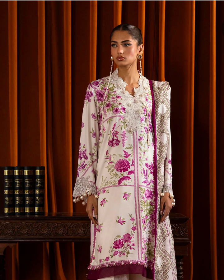 Sana Safinaz – 3 Piece Un Stitched Printed white and purple
