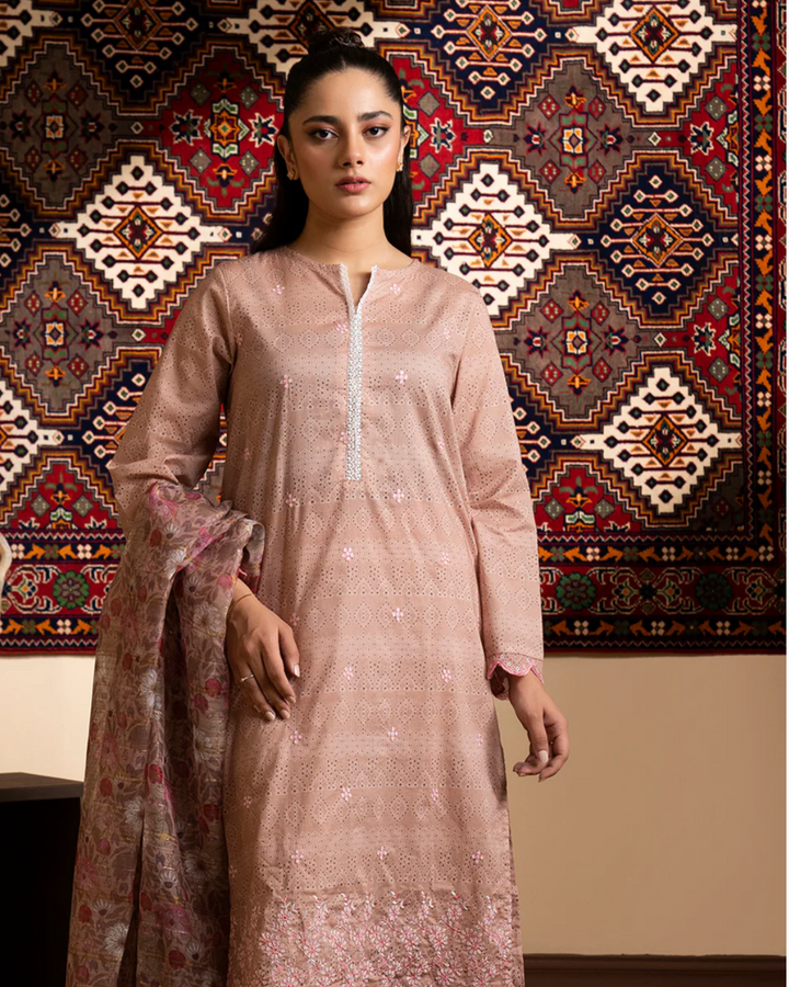 Zullbury - 3 Piece Stitched Beige pink